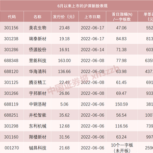 6月上市新股无一破发