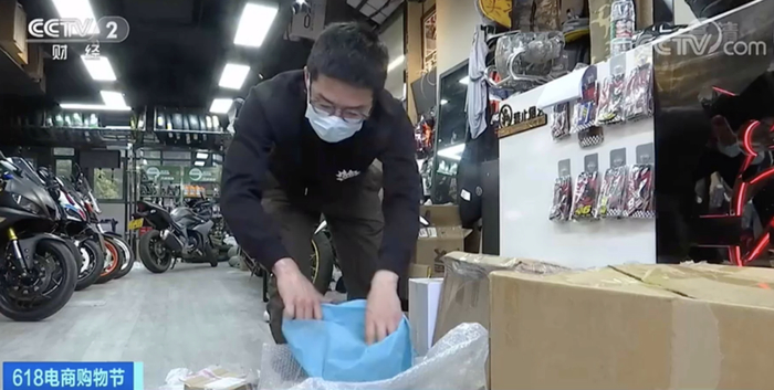 在北京的一家摩托车维修店,记者看到门口堆满了各种大小的快递。维修师傅介绍,去年开始,大部分人都在网上购买摩托车零配件,带到店里或者直接寄到店里安装。工作人员说,每天最少收四五个包裹,多的时候有十几个。