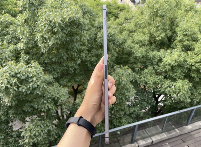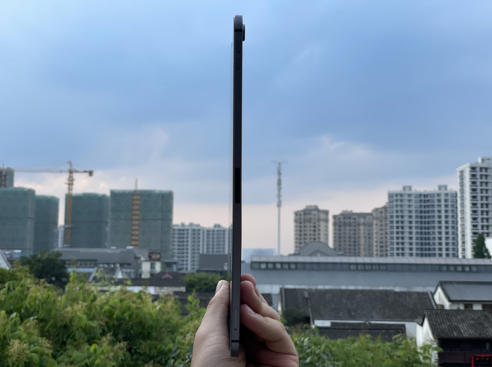 像我旁边的同事,他的 2020 款 iPad Pro 就是平时一直在裸奔画画,所以也出现了轻微弯曲:
