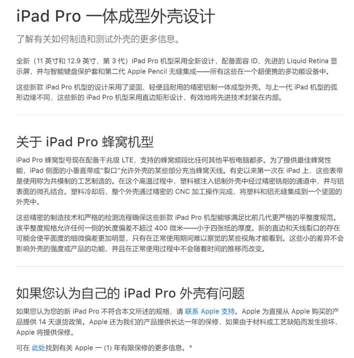 在很早之前,苹果就曾表示在对金属和塑料部件进行冷却的过程中,确实会导致一部分 iPad Pro 平面度出现细微偏差,但这并不影响设备正常使用。