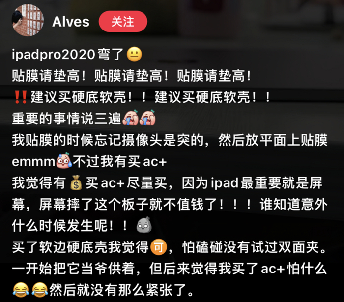 当然也有大冤种仅仅只是在把 iPad 从保护壳上取下来或者在给 iPad 贴钢化膜的时候,一不小心用力过猛导致了 iPad 变弯~