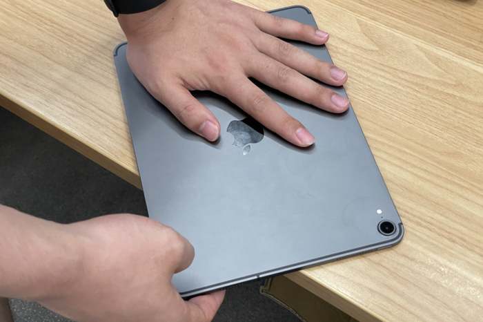 在发现自己的 iPad Pro 变弯以后呢,托尼也是尝试了几种可以让 iPad 重新变直的方法。