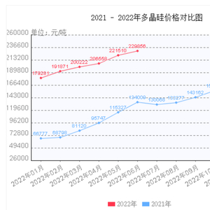 需要指出的是,当前国内多晶硅价格处于近年以来的高位。据中国有色金属工业协会硅业分会6月15日发布的数据,本周国内多晶硅价格维持微涨走势,其中单晶复投料价格区间在26.3万-27.0万元/吨,成交均价为26.85万元/吨。相比之下,2021年6月,多晶硅价格为13.4万元/吨。再往前看,2021年初,多晶硅价格尚不足7万元/吨,与当前价格相差悬殊。