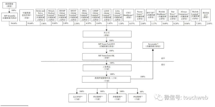 IPO前,微创医疗持股54.64%,中国微创投资管理持股10.64%,Stride and Strive持股1.96%,HNA持股为4.95%,Nectar Neuro持股为2%;