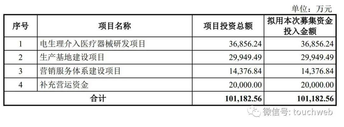 其中,3.69亿元用于电生理介入医疗器械研发项目,3亿元用于生产基地建设项目,1.44亿元用于营销服务体系建设项目,2亿元用于补充营运资金。