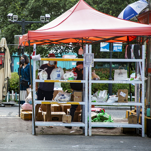 2022年6月17日,上海,“618”购物节,小区使用货架摆放快递,方便自取 视觉中国图