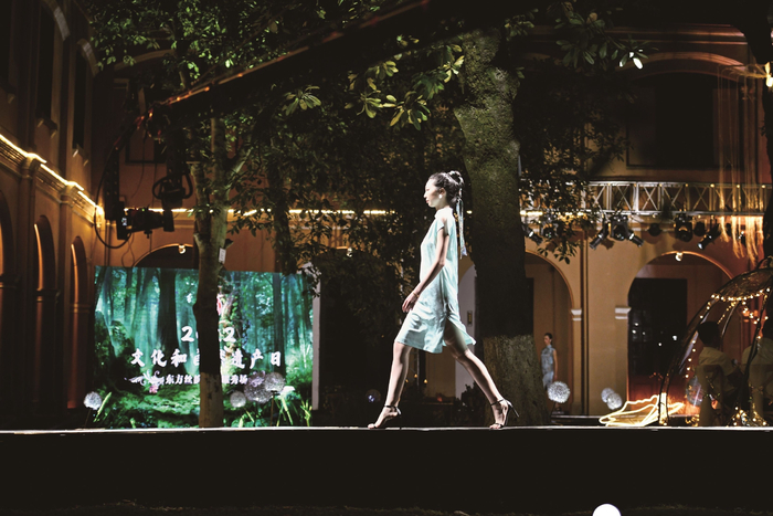 华灯初上,星光璀璨。树影婆娑间,一位位身穿新中式服装的模特伴随着音乐声缓缓走来,她们身上的衣服绚丽夺目。作为人类非物质文化遗产代表项目,蚕桑丝织技艺制作的110余件(套)非遗元素服装,让人们再一次走近非遗,认识非遗。