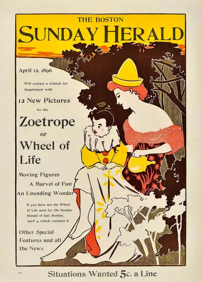 埃塞尔设计的 1896 年 4 月 12 日《波士顿星期日先驱报》海报