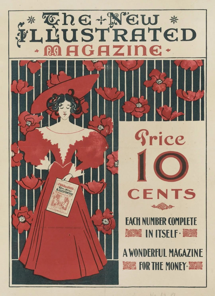对当时的艺术家而言,没有什么工作比画海报更热门了。1890 年代美国人对海报的热情达到巅峰,一张引人入胜的海报不仅能让商品迅速卖到断货,还是收藏家们竞相争夺的珍品。在这场海报狂潮面前,出版行业亦求贤若渴,不断发掘有才华的艺术家创作海报用以宣传。