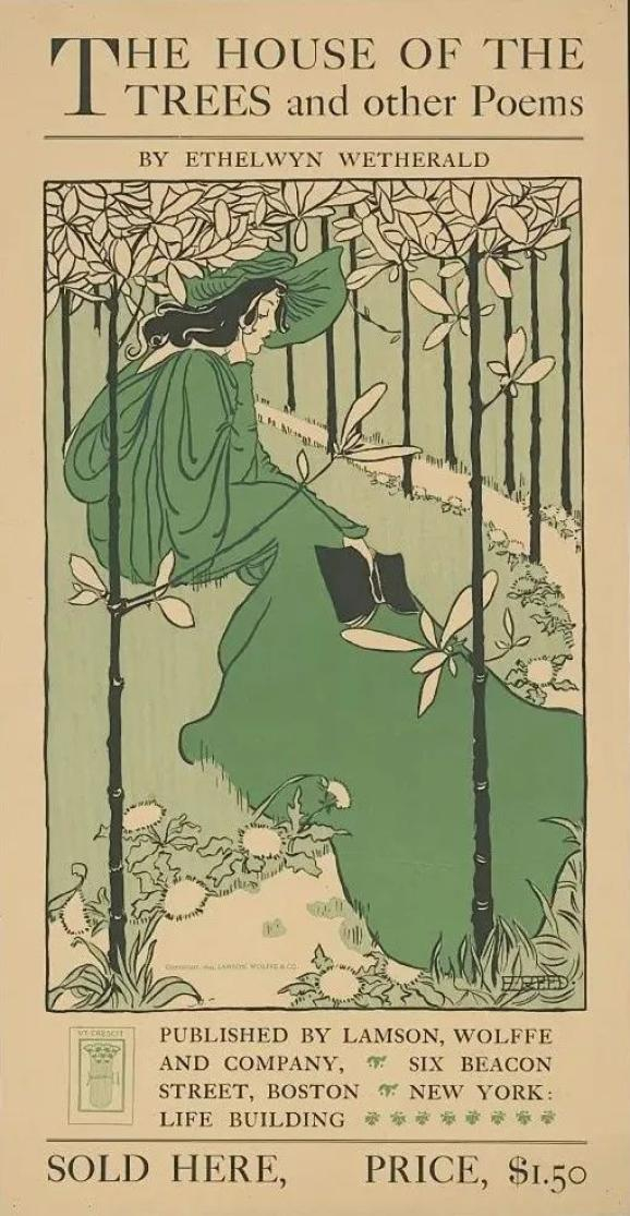 埃塞尔为加拿大诗人 Ethelwyn Wetherald 的第一本独立诗集《树屋和其他诗歌》绘制的海报/ 1895 年