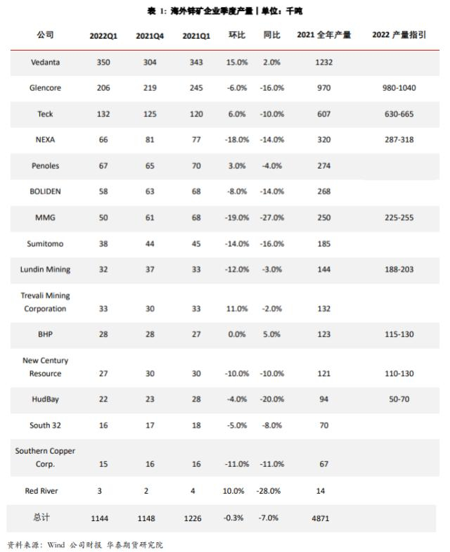 而对于2022年产量指引,Q1产量报告中对此前的指引进行了修正,将2022年锌产量重新定为101±3万吨,较此前的111±3万吨下调9%。