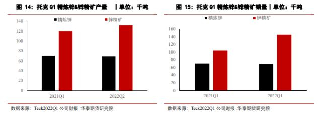 托克资源2022年Q1财报显示,该公司锌精矿产量为13.2万吨,较2021年同期大幅上涨10%。精炼锌产为6.9万吨,较去年同期下降6.76%。销量方面,Q1锌精矿录得14.5万吨,较去年同期上涨39.42%,精炼锌录得6.9万吨,较去年同期下降1.43%。