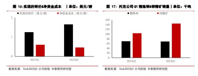 在企业盈利方面,由于锌价的走高以及现金成本的降低,使得企业2022年Q1在锌项目方面的息税折旧摊销前利润(EBITDA)较去年同期大幅上涨71.26%至2.98亿美元。