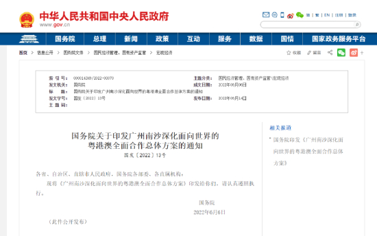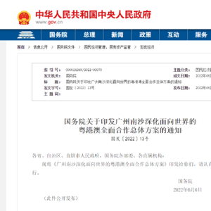 6月14日,国务院正式公布《广州南沙深化面向世界的粤港澳全面合作总体方案》(以下简称《南沙方案》)。