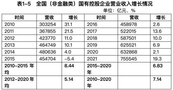 另据国资委最近公布数据,国资委管辖的中央企业,“2012-2021年营业收入从22.3万亿元增长至36.3万亿元,年均增长5.5%。