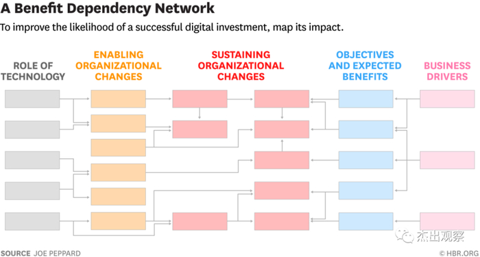 区别于大范围的数字化规划,相对规模小的系统在利用BDN的时候,需要更细致的梳理技术组件,涉及到的每一个组织上、流程上、系统上的变更,以及这些变更如何通过持续性的组织活动,形成业务收益,以达到业务目标,应对来自公司内部和市场上的驱动因素。