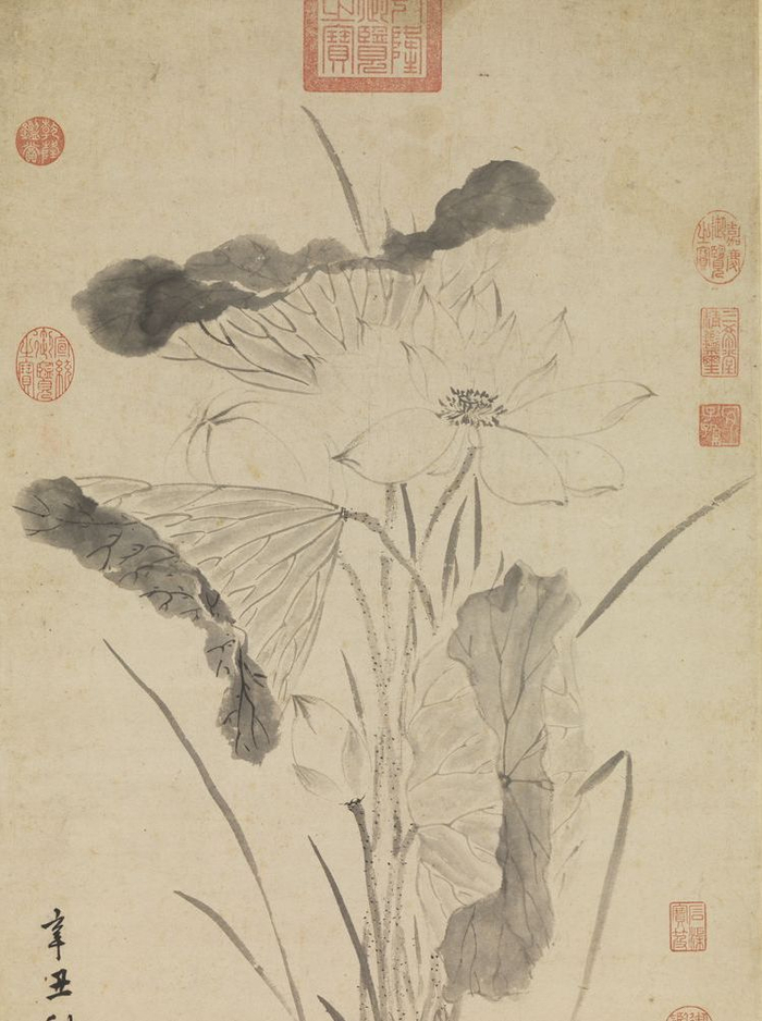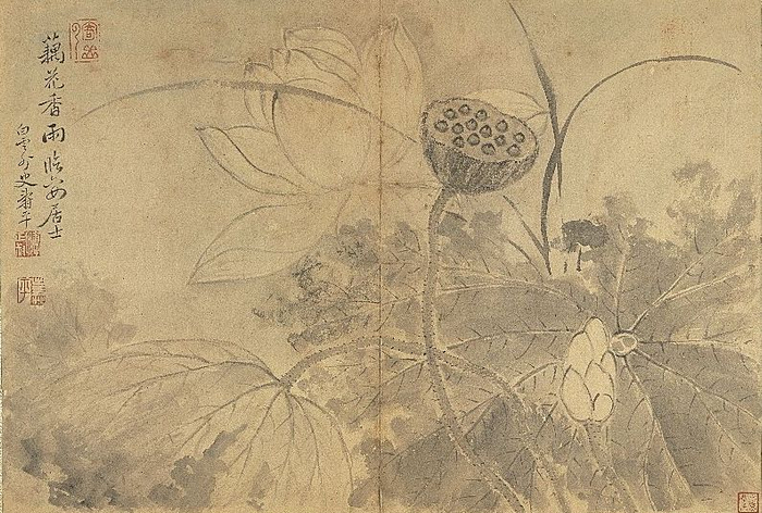 夏至将至,荷花正盛,从宋代至今,画家笔下的荷花更是一片清韵。宋代《出水芙蓉图》设色端庄大气,宋人写真微妙处,让人慨叹;明代文从简幅画荷雅淡之极,题诗“水面闻香”;明末徐渭的《墨荷》诗中则自题:“茨菰叶碧蓼花白,菱子稍黄莲子青。最是秋深此时节,西施照影立娉婷。”笔墨相映,书画双美。