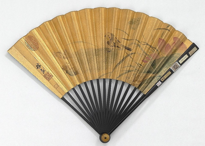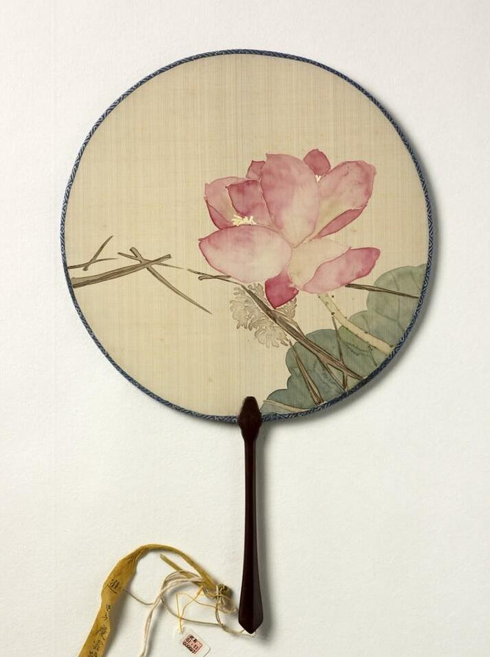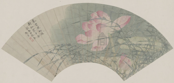 清人 画荷花 成扇