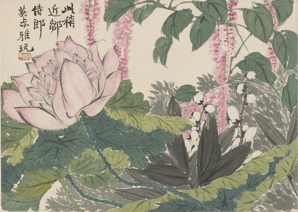 本幅画荷塘一隅,自题“摹家白阳(陈淳)”,笔不若陈淳之纵横豪放,但潇洒灵秀而有韵致。
