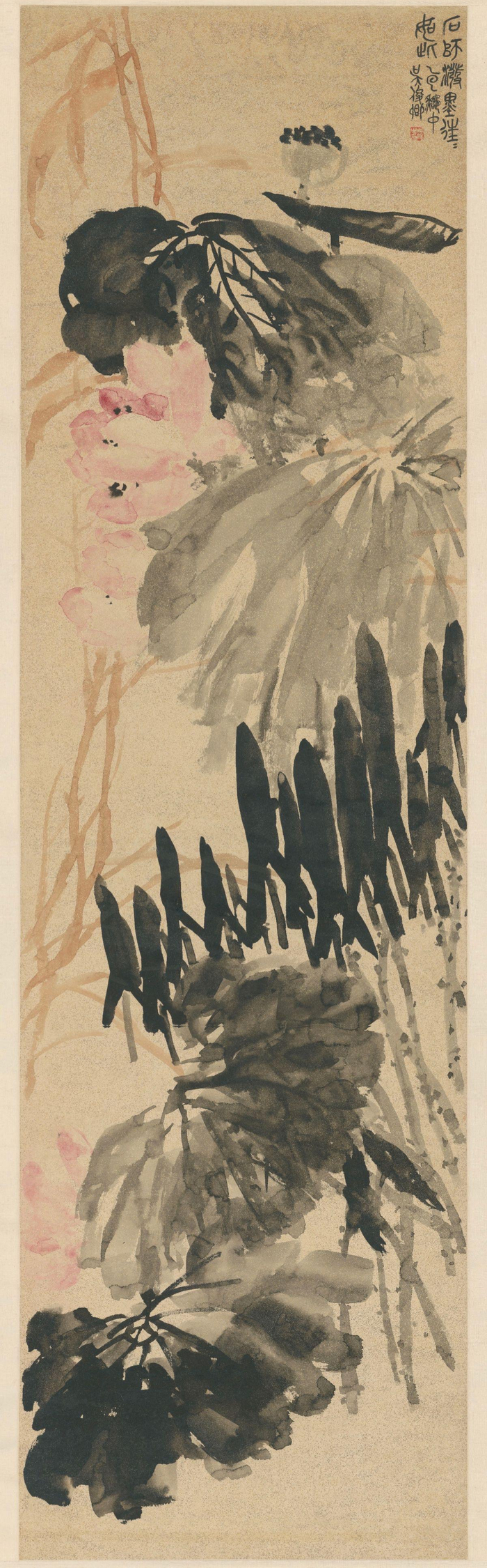 赵之谦是“海派”先驱之一,其书画不仅名重于时,而且对近现代艺坛也有着极大的影响。清 吴昌硕 荷花图 轴
