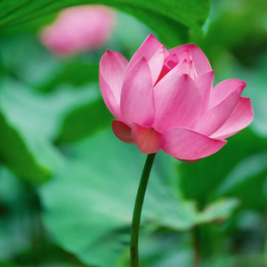 一朵盛开的粉红色荷花占据整个画面,在碧绿的荷叶映衬下抢眼而夺目,布局、设色端庄大气,将荷花“出淤泥而不染,濯清涟而不妖”的君子气质表现得十分完美。