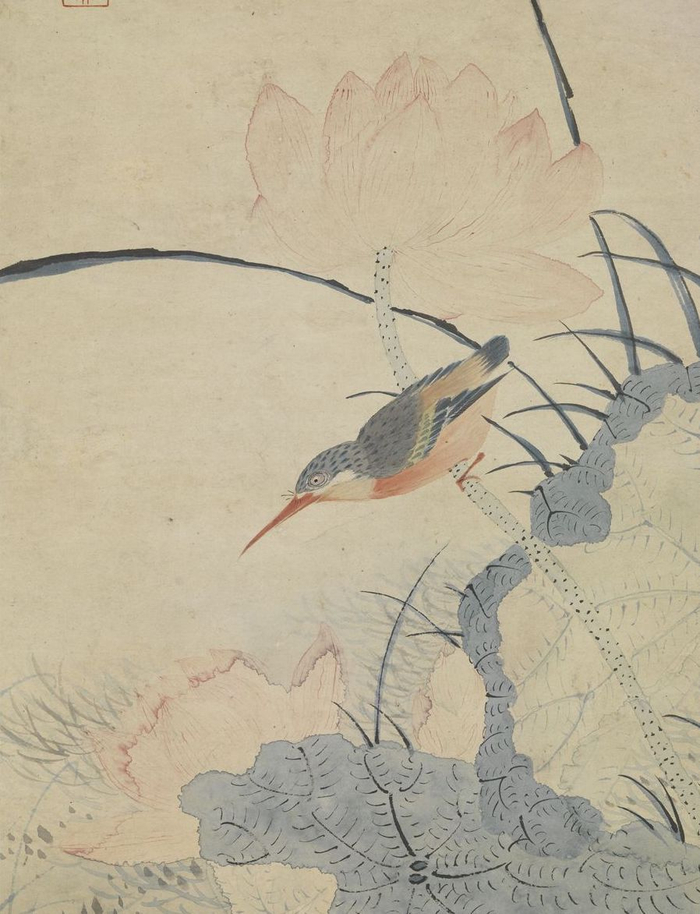 明 陈洪绶 画荷花 轴(局部) 台北故宫博物院藏