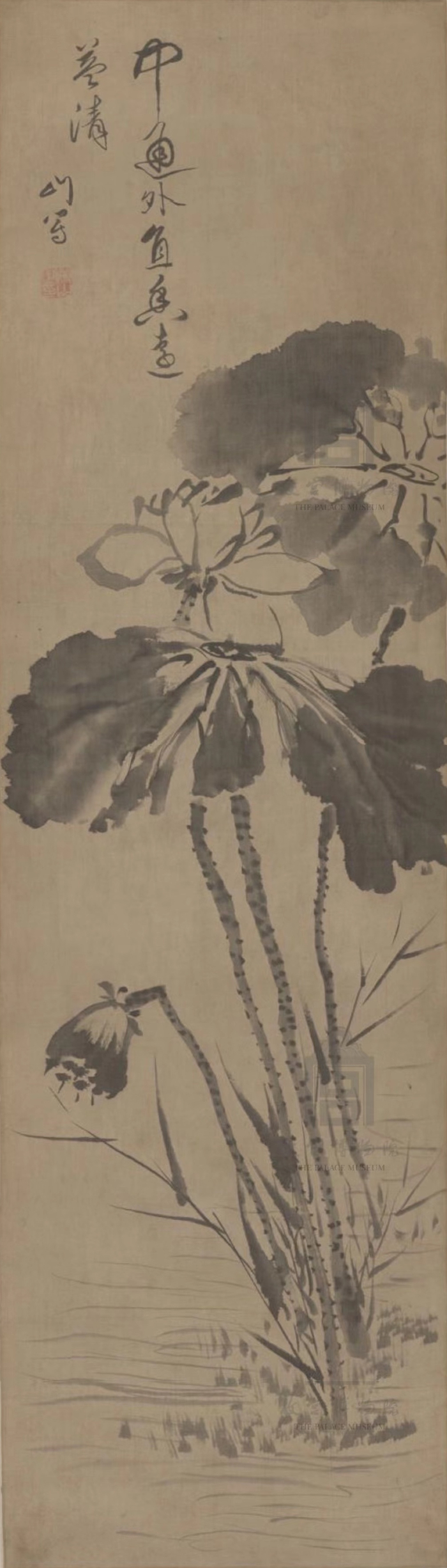 明 陈洪绶 红荷 轴(局部) 故宫博物院藏