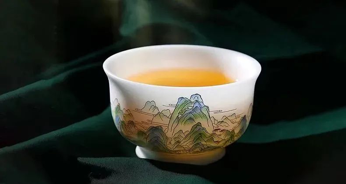 捧在手心里品一杯茶,感受羊脂白玉般的温润、莲花杯型的清丽、青绿山水的唯美,令人沉醉在茶本味的淡雅香韵之中。
