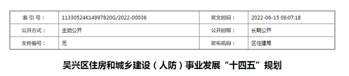 近日,湖州市吴兴区住建部门发布《吴兴区住房和城乡建设(人防)事业发展“十四五”规划”》。