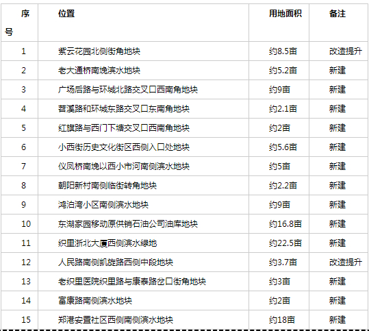 “十四五”期间, 15座街角(口袋)公园,详见下表。