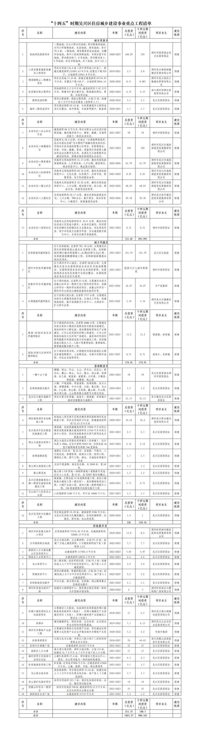 ▼“十四五”时期吴兴区住房城乡建设事业重点工程清单