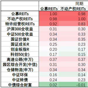 公募REITs与同期的股指和部分板块、风格指数具有一定相关性。公募REITs与沪深300、中证500的同期相关性系数均超过0.3,具有一定相关性。风格方面,公募REITs与价值指数的相关性强于与成长指数的相关性。板块方面,公募REITs与高速公路、园区综合开发、仓储物流指数具有一定相关性,与环保指数相关性较弱,事实上,生态环保类型的中航首钢绿能REIT与富国首创水务REIT上市至今涨幅较大,走势也确实独立。