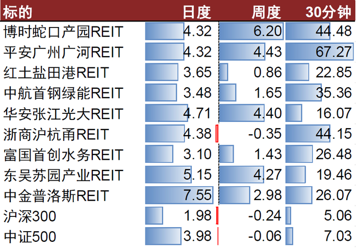 图表9:沪深300全收益指数与公募REITs市值加权总回报周度涨跌幅统计