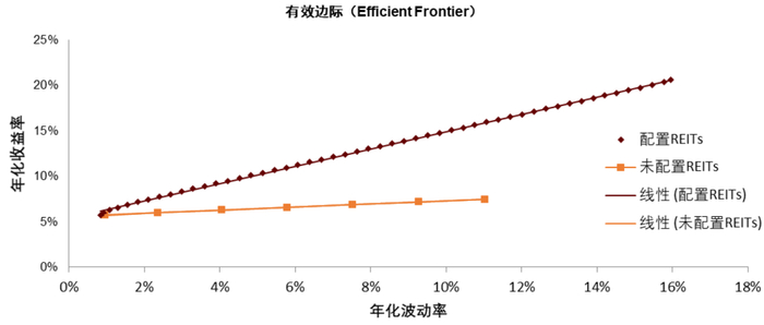 二、有效前沿(Efficient Frontier):公募REITs可以优化投资组合,拓宽有效前沿。