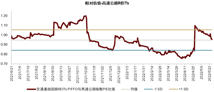图表13:高速公路REITs与高速公路股票指数相对估值