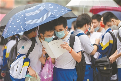 在华附考点,广州第113中学陶育实验学校考生的妈妈们穿了各式各样的旗袍。相比起妈妈们的“隆重”,爸爸们则相对低调一些。家长刘先生穿着天蓝色衬衫和深蓝色西裤前来送考,他表示,中考这几天打算一切如常,早餐女儿也只是吃了面包牛奶 ,并没有特意为她准备“意头”早餐。“我们希望她能保持一颗平常心参加考试,正常发挥就好了。只要她始终愿意学习,我们相信她未来一定能取得进步。”刘先生说。