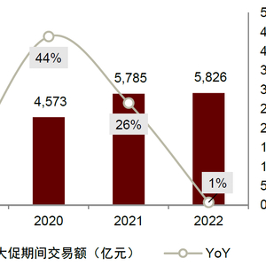 注:为保持口径一致,2019年双十一大促期间交易额由2020年交易额和和增速计算得出;2019-2021年双11和2022年618交易额口径均包含直播电商
