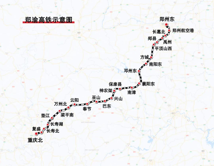 郑渝高铁线路图。国铁集团中国铁路成都局集团有限公司供图