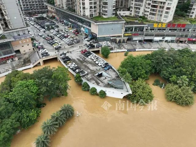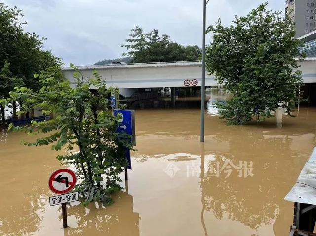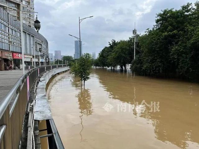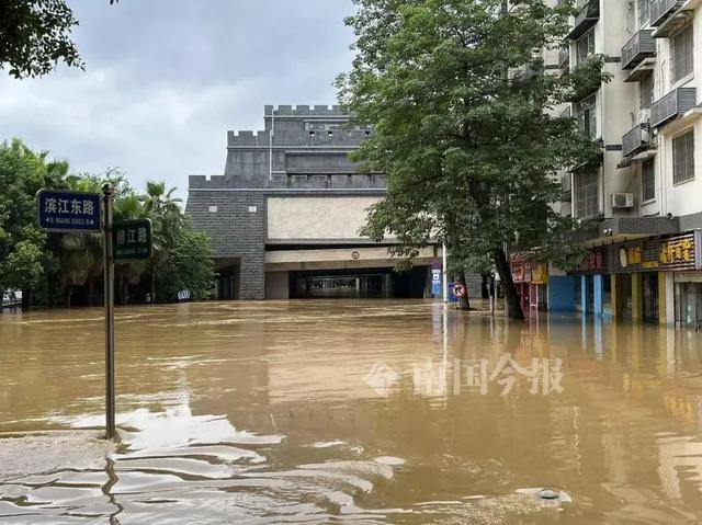 在金沙角一带,上涨的洪水将底层的沿江商铺几近没顶。风情港下面的底层沿江商铺进水也接近一米。滨江西路红光桥底的居民楼进水深度一米左右。