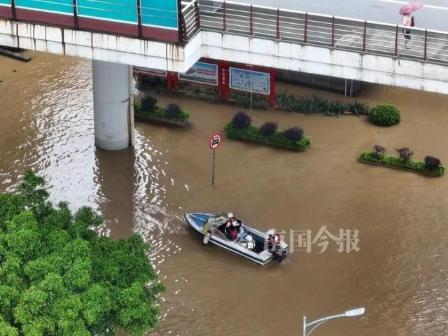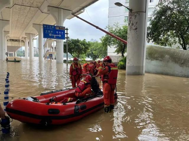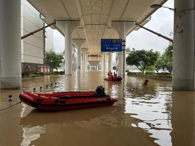 红光桥下滨江西路已经一片汪洋 消防正在营救被困人员。