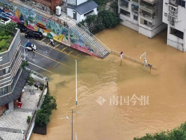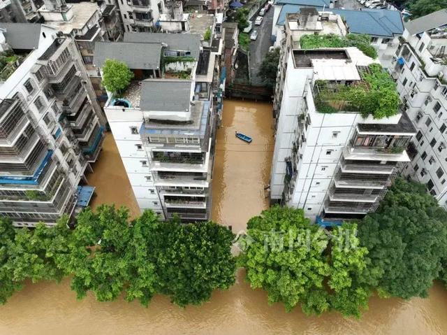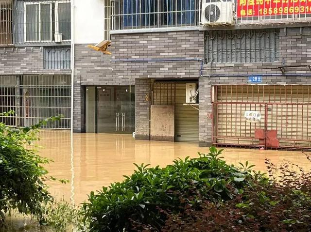 滨江西路居民楼被洪水淹没