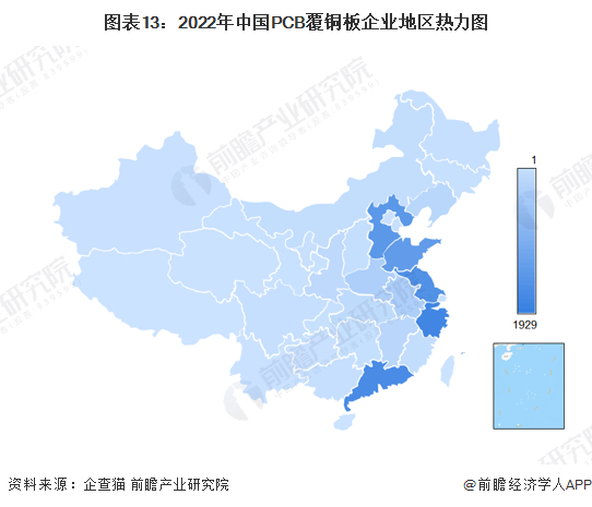 从覆铜板企业数量来看,根据“企查猫”平台中对经营范围内含有覆铜板的企业情况,中国覆铜板企业主要集中在华东沿海地区和广东省,其中浙江省覆铜板企业数量最多,达1929家;广东省和江苏省排再第二和第三位,覆铜板企业数量分别为1816家和1706家;河北省和山东省的覆铜板企业数量均超过1000家,其余省份覆铜板企业小于500家。