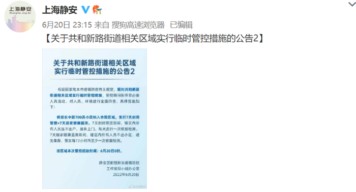 该区域本次管控起始时间:6月20日0时。