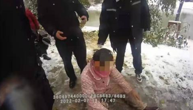 女子情绪激烈地反抗着民警施救