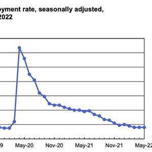 图为美国失业率(2019年5月-2022年5月)来源:美国劳工部