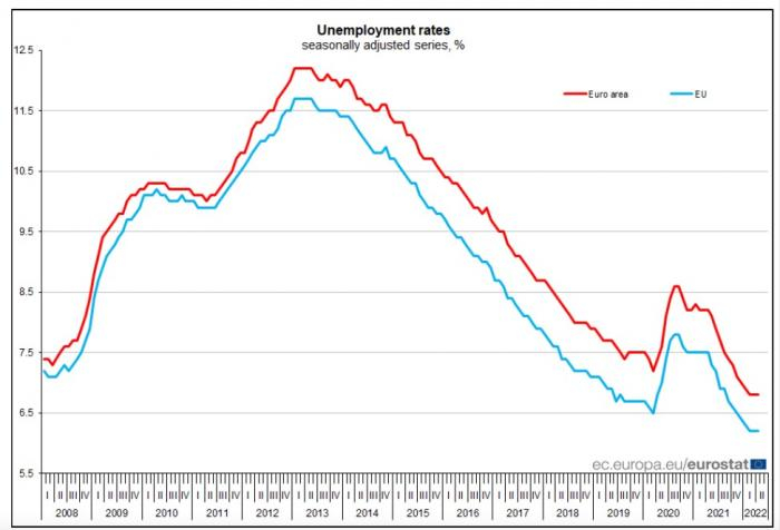 北京大学国家发展研究院教授卢锋对21世纪经济报道记者表示:“从失业率来看,美国3.6%的数据已是处于几十年来的历史低位,一般认为美国比较常见的自然失业率在4%-5%左右。而欧盟现在的数据,6.2%的失业率相比欧盟长期比较高的平均失业率来看,也是一个低值。”