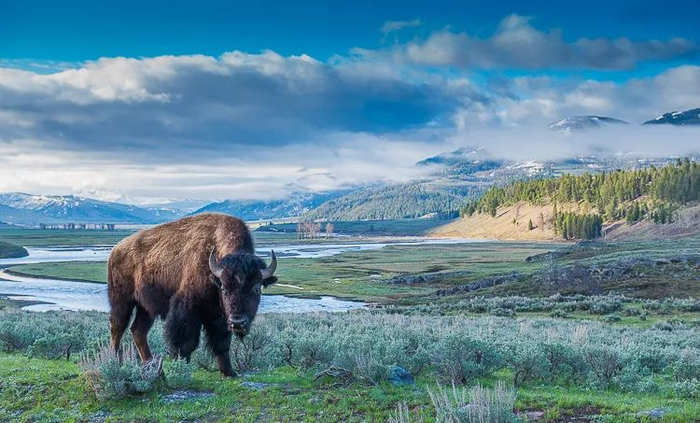 作为美国第一座国家公园,黄石公园地跨怀俄明、蒙大拿、爱达荷三州,占地9000平方公里。