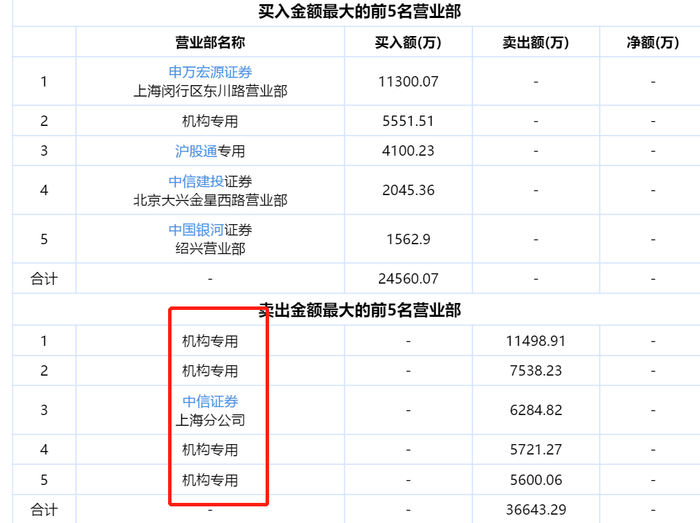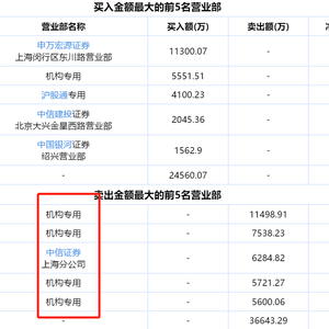 昭衍新药盘后数据显示,机构专用席位占据卖出前五席中四席,合计净卖出超3亿元,其中卖一专用席位净卖出1.15亿元。