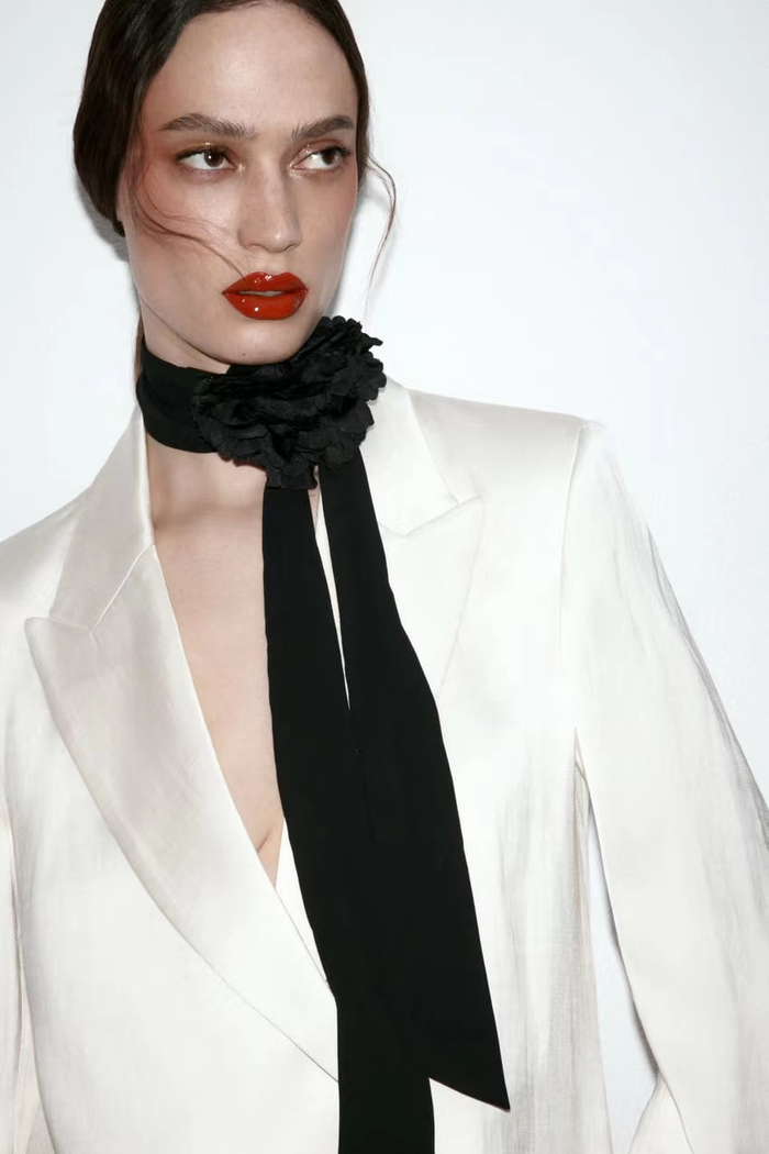 最后一款提供三种配色的花卉颈巾是一款能瞬间提升时髦感,秒出复古妩媚大片的配饰神奇,近景拍摄中花朵的每一片花瓣都十分精致,尤其是白色款与真花几乎没有差别。玫粉色艳丽,黑色别致,白色清新。Zara新款夏季花卉饰品系列绝对是品牌饰品中的宝藏系列。