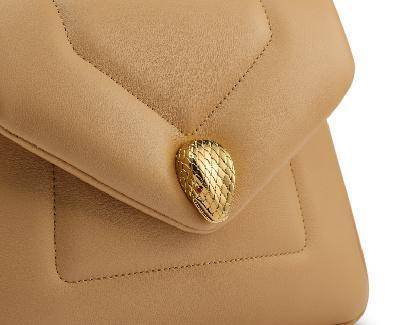 Serpenti Reverse包袋共两种款式,一款搭配的是蛇纹金属手柄,另一款则采用蛇纹金属链条与皮革拼接的长肩带,两款均采用精细的Matelassé绗缝皮革设计,搭配品牌经典蛇头包扣,和内部大收纳空间,是日常或工作时提升时尚感的理想单品。